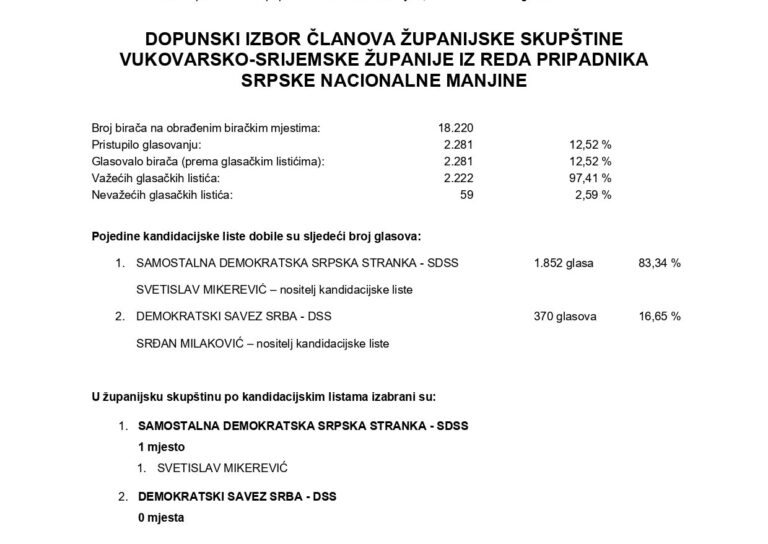 Za novog člana Skupštine Vukovarsko-sremske županije iz reda srpske zajednice izabran je SDSS-ov Svetislav Mikerević, koji je bio većnik i...