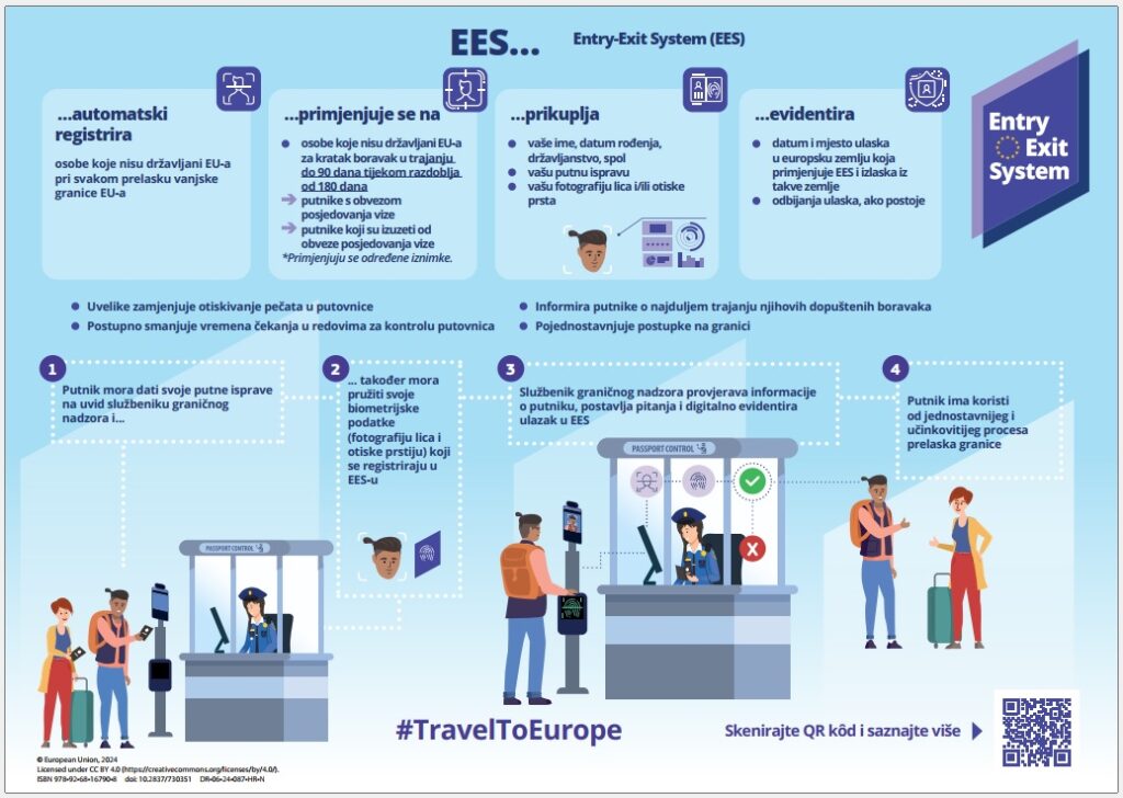Novi sistem elektronski evidentira vreme i mesto ulaska i izlaska državljana trećih zemalja s odobrenjem za kratkotrajni boravak, izračunava preostalo dopušteno vreme boravka te prikuplja biometrijske podatke, fotografiju lica i otiske četiri prsta desne ruke.