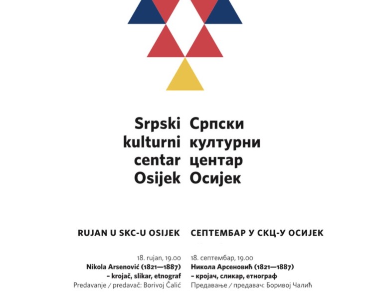 Iz Srpskog kulturnog centra Osijek pozivaju na predavanje „Nikola Arsenović (1821.-1887.) – krojač, slikar, etnograf“ koje će biti održano u...