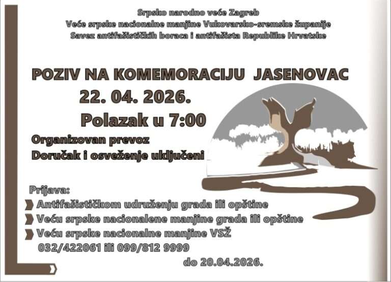 Srpsko narodno veće iz Zagreba, Veće srpske nacionalne manjine Vukovarsko–sremske županije i Savez antifašističkih boraca i antifašista Republike Hrvatske pozivaju...