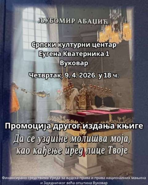 Promocija će biti upriličena u četvrtak, 9. aprila u 18 časova, u prostorijama Srpskog kulturnog centra koji se nalazi u zgradi Zajedničkog veća opština, u ulici Eugena Kvaternika na broju 1.