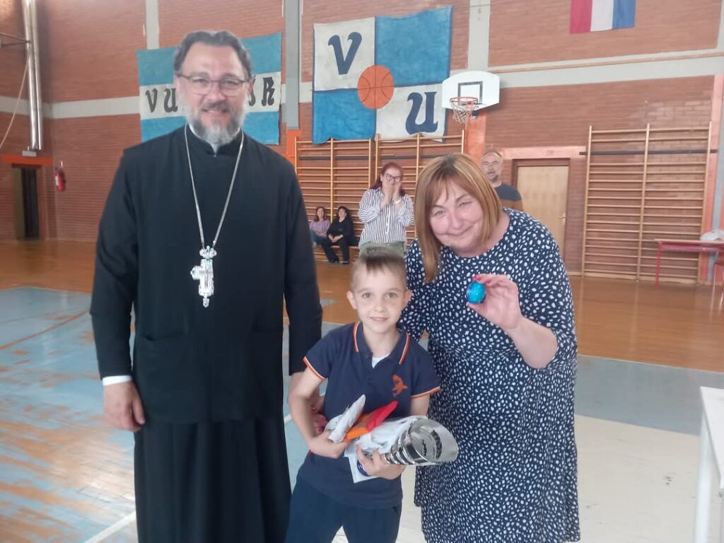 Vlasnik najtvrđeg i najlepšeg vaskršnjeg jajeta su nagrađeni peharima i slatkišima te kompletom; ikone Svete Trojice, knjige o zapovednim crkvenim praznicima kod Srba i duhovne pesmarice “Dobro doš’o Hriste”, poklonom Druge parohije vukovarske.