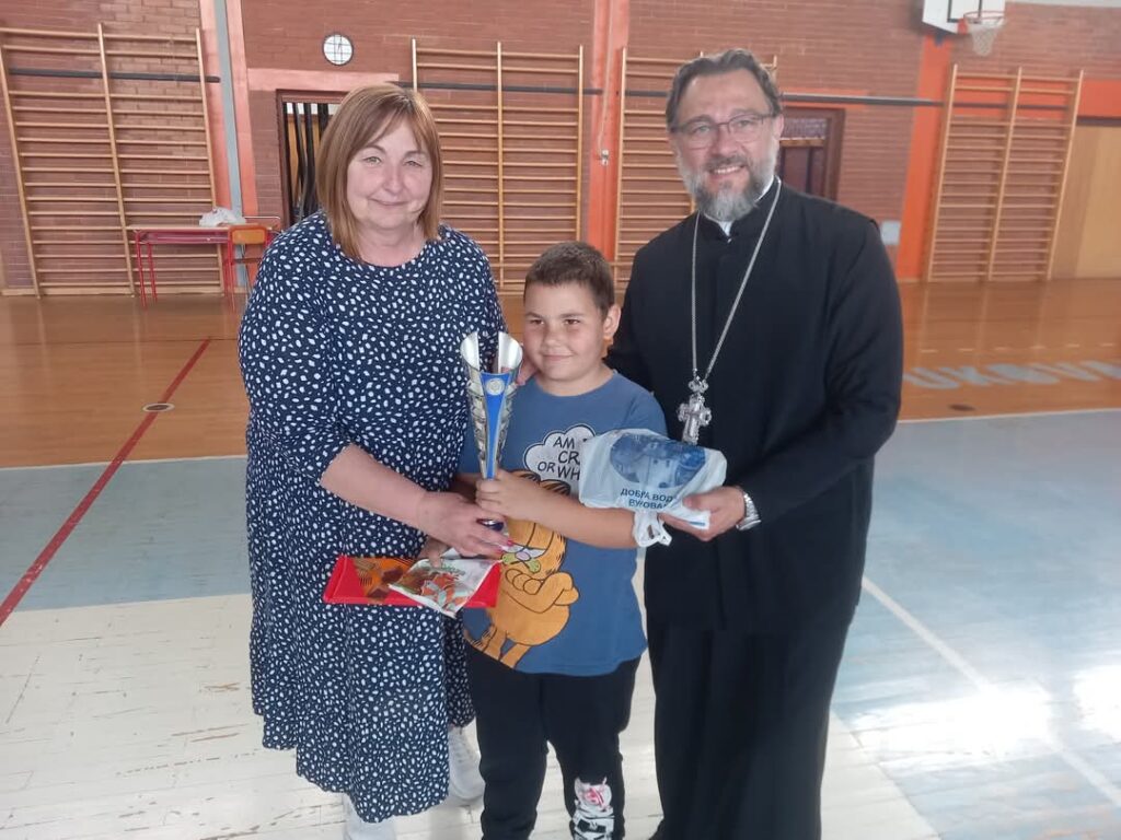 Na početku programa protojerej-stavrofor Miljen Ilić, starešina hrama Prepodobne matere Paraskeve na Dobroj vodi, zahvalio se direktorki škole na ovom programu, istakavši zadovoljstvo što se u ovoj “kući znanja” slavi pobedonosnim pozdravom kojim su apostoli išli da šire hrišćanstvo.